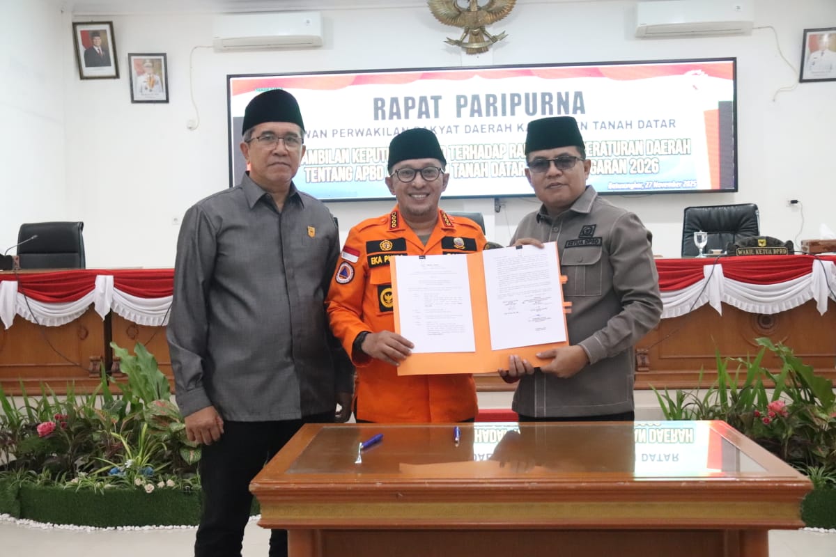 Alhamdulillah, setelah melalui rangkaian proses pembahasan, masing-masing fraksi telah menyampaikan pendapat akhir atas Ranperda tentang APBD Kabupaten Tanah Datar 2026 dan semua setuju untuk dijadikan Perda, terima kasih, ujarnya.